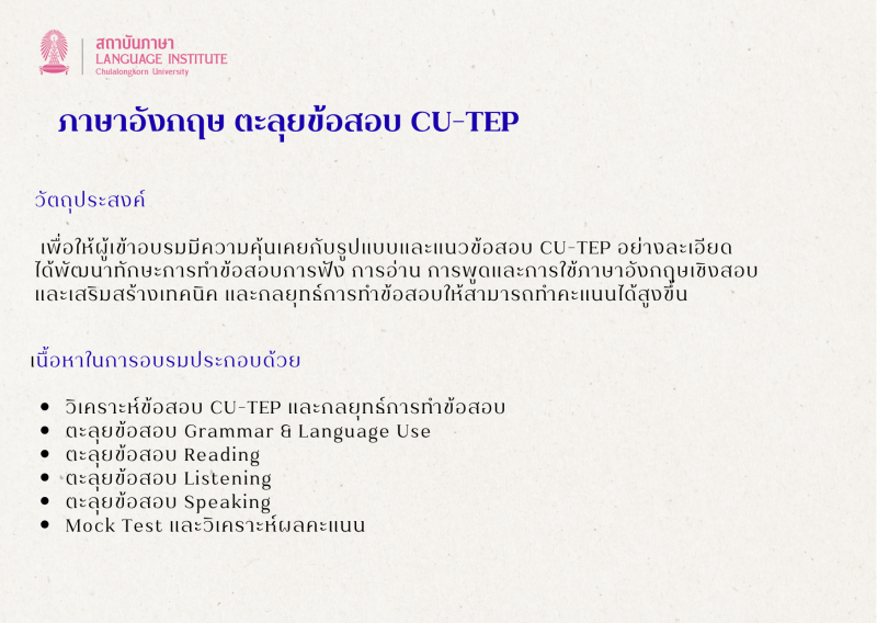 หลักสูตรภาษาอังกฤษเตรียมพื้นฐาน CU-TEP