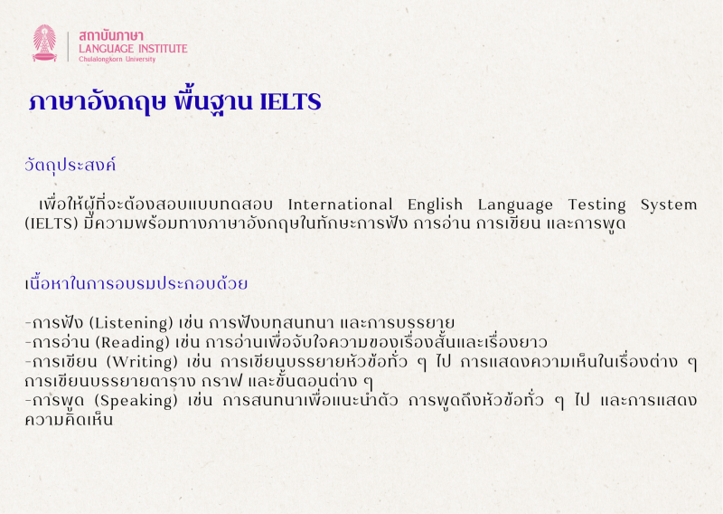 หลักสูตรภาษาอังกฤษเตรียมพื้นฐาน IELTS