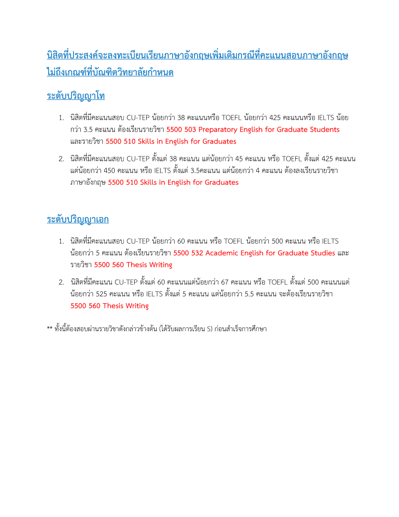รายละเอียดรายวิชาภาษาอังกฤษ สำหรับบัณฑิตศึกษา Graduate English (GE) ประจำภาคปลาย ปีการศึกษา 2568