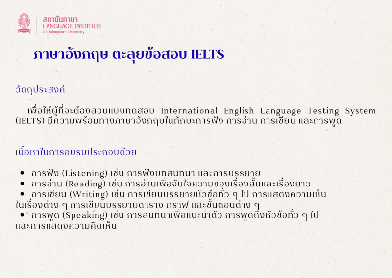 หลักสูตรภาษาอังกฤษเตรียมพื้นฐาน IELTS